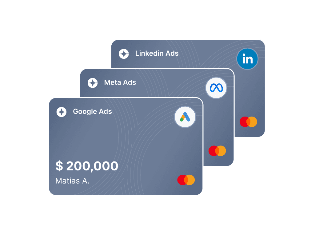 Crea tarjetas ilimitadas para su equipo, personalice los límites y controle los gastos en tiempo real.