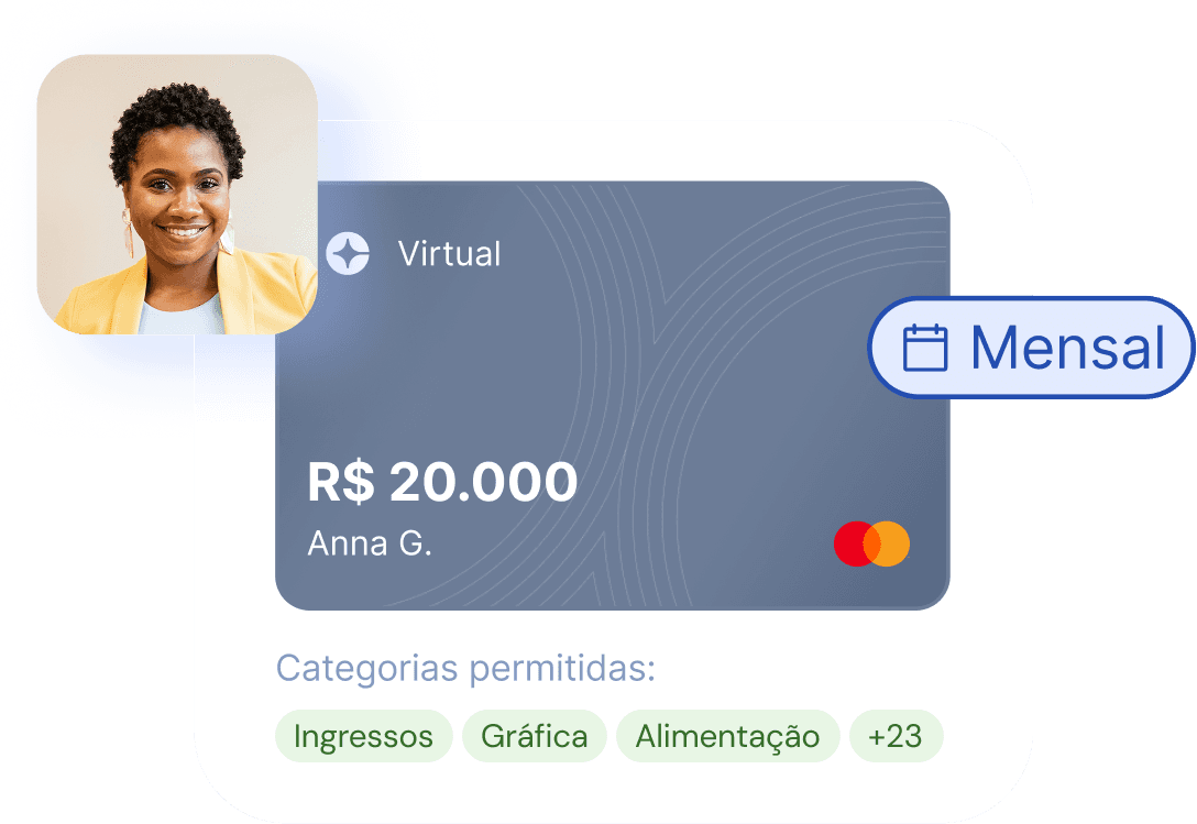 Dê um cartão para cada colaborador, com limites e categorias personalizados. Na hora do gasto, ele já presta contas direto pelo App.